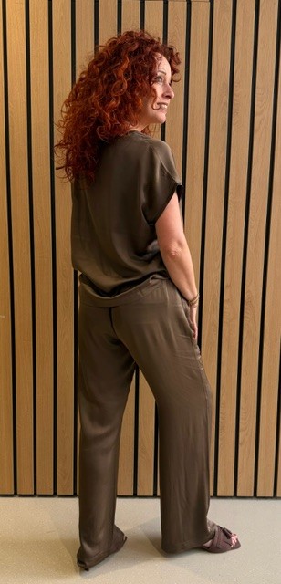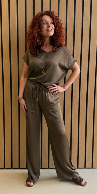 Stijlvolle dames satijnen broek van Noman’sland in de kleur soft bark. Gemaakt van 100% viscose voor een soepel en comfortabel draaggevoel. Voorzien van een elegante strikceintuur voor een perfecte pasvorm. Perfect voor een chique en tijdloze look. Bestelnummer: 65.279-6578.