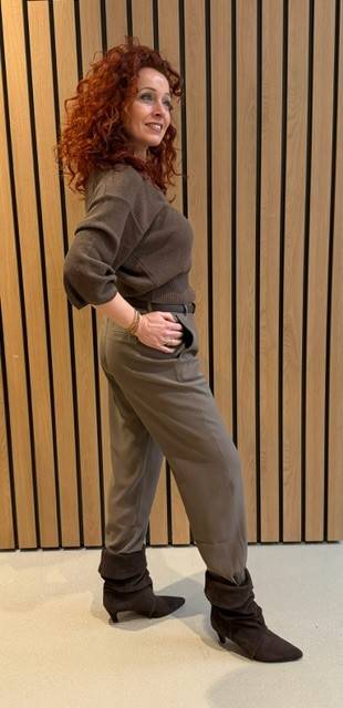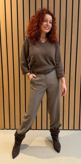Deze zachte pantalon kan eenvoudig worden gestyled voor verschillende gelegenheden: