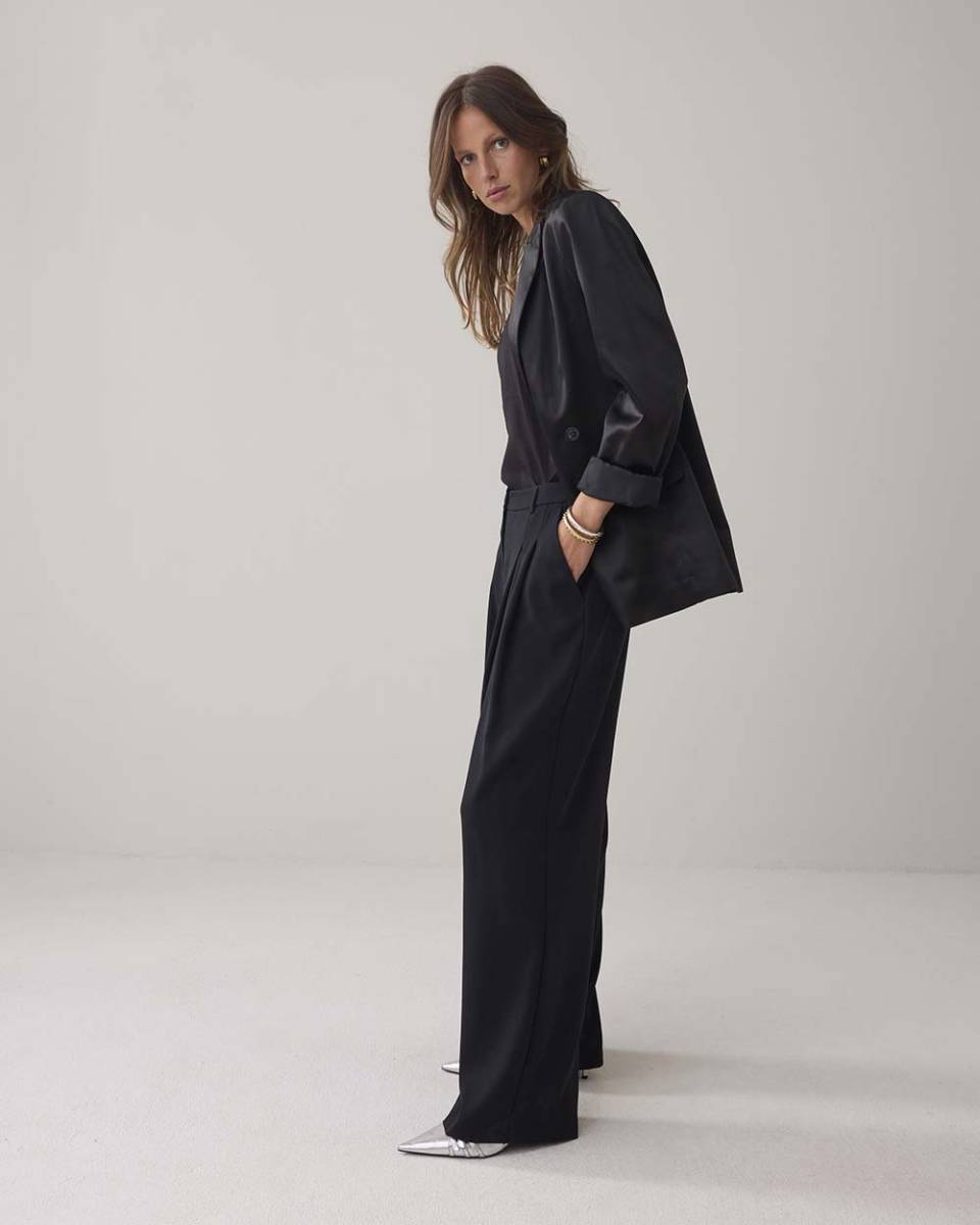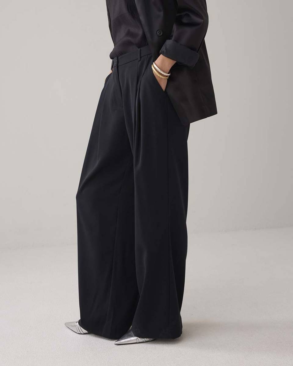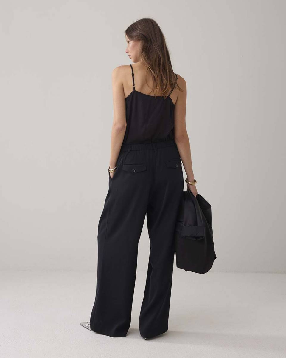 - Vloeiende pasvorm: dankzij de wijde pijpen heeft de broek een comfortabele en elegante uitstraling.