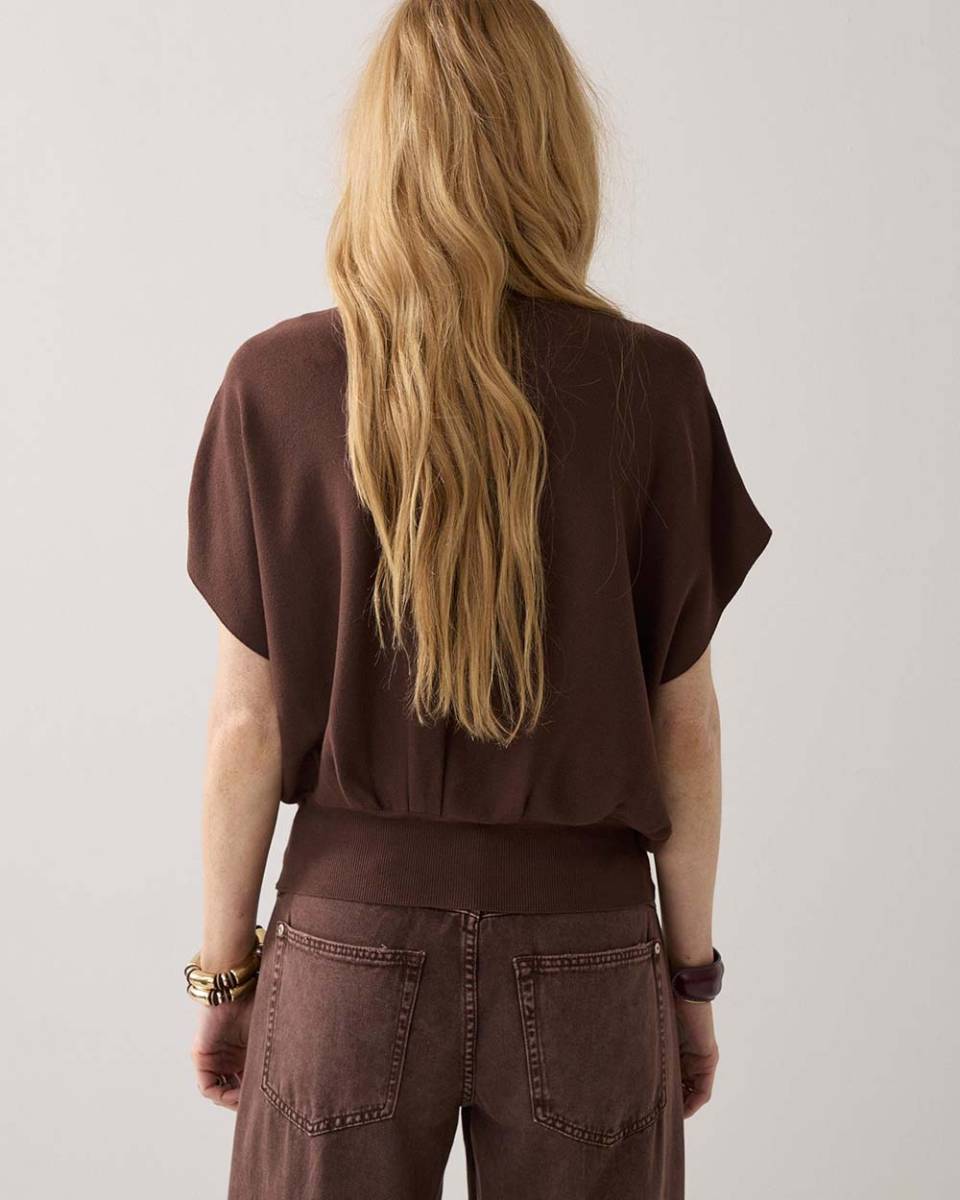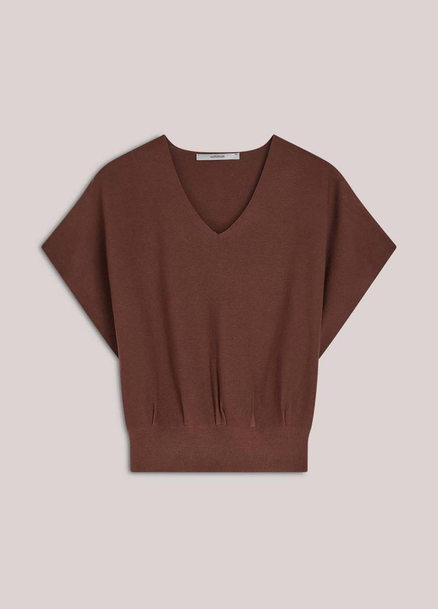 SUMMUM WOMAN – V-neck sweater viscose blend knit coffee Summum – BESTELR: 7S7994-70054-