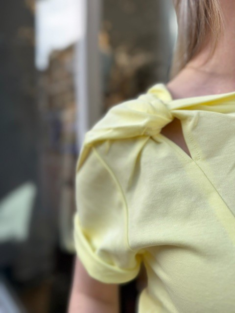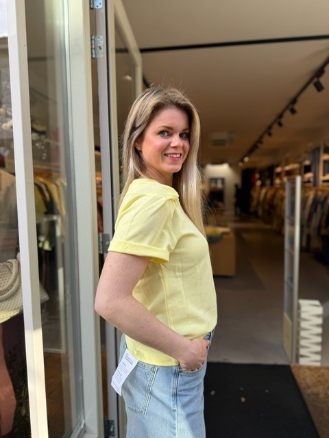 Ontdek het Vanya Rae T-shirt in een frisse gele kleur van AIMEE the Label. Dit veelzijdige kledingstuk voegt een vleugje stijl en comfort toe aan je garderobe. Het t-shirt is ontworpen met een subtiel knoopdetail bij de bovenarmen, wat het een uniek en speels karakter geeft.