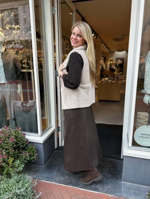 De neutrale beige kleur maakt dit kledingstuk veelzijdig en eenvoudig te combineren met verschillende andere kleuren en stijlen. Of je nu kiest voor een klassieke blouse eronder of een casual T-shirt, de waistcoat geeft altijd een elegante uitstraling.